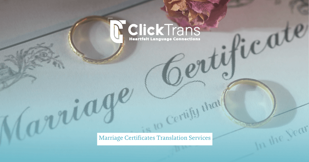 At ClickTrans Language Solutions, we provide a certified marriage translation accompanied by a Certificate of Accuracy to ensure all information is accurately and precisely conveyed and fully USCIS-compliant.
